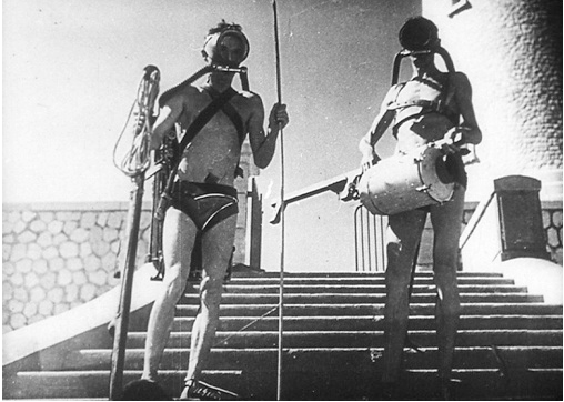 « Par 18 mètres de fond ». Il ne dispose encore d’aucun appareil capable de répondre à ses exigences. A peine a-t-il expérimenté avec Philippe Tailliez une caméra enfermée dans un bocal de verre ainsi que la caméra utilisée par le père Antoine Poidebard pour les premières expériences de prise de vues archéologiques subaquatiques, jugée inadaptée aux évolutions d’un nageur sous-marin.