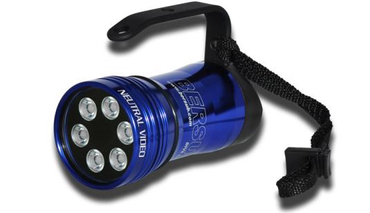 On va passer rapidement sur les caractéristiques générales de ce Bersub, un modèle dont la réputation n’est plus à faire, celui-ci est alimenté par 6 piles LR06 que l’on peut très simplement remplacer par des accumulateurs Nimh de même taille, Bersub peut les fournir en option mais vous pouvez aussi utiliser ceux de la console de jeux de votre rejeton qui se tiendra du coup à carreau pendant quelques jours. Le Variled utilise 6 LEDs de 3W qui sont disponibles en 14° d’angle ou, comme c’était le cas pour notre modèle de démonstration, en 50 ° pour la vidéo. L’ensemble est compact, ne pèse que 550 grammes et dispose de 2 puissances réglables. On ajoutera pour les plus tordus d’entre nous que les Bersub sont étanches à 200 mètres. Bon, tout ça c’est bien beau mais il y a un mot dans le titre qui est probablement le plus important pour les vidéastes : « neutral ». Dans cette version le Bersub est équipé de LEDs qui fournissent une lumière à 4300 Kelvin, c’est à dire une lumière beaucoup plus chaude (température froide égal lumière chaude) que la moyenne des LEDs. Et alors me direz vous. Et bien si vous considérez que l’eau absorbe rapidement la composante rouge de la lumière et que c’est pour ça, pour rajouter du rouge, que vous utilisez une lumière artificielle, il y a quelques chose d’anachronique à utilisez des sources, les LEDs, qui sont le plus souvent dans une gamme de température si chaude, entre 6500 et 8000, qu’elles apportent finalement beaucoup moins de rouge qu’une bonne vieille lampe halogène. Et cela d’autant plus que l’eau constitue toujours un filtre, même devant les sources artificielles, qui ne va que diminuer encore la composante rouge de vos éclairages. Au final, l’idéal serait d’arriver sur le sujet avec une température de couleur proche de la lumière du jour, c’est à dire 5600 Kelvin, d’ou l’idée de Bersub, avec cette gamme Neutral, de proposer des LEDs basse température prévues pour donner des couleurs plus chatoyantes que la normale. Et pour ceux qui sont restés 2 ans en arrière, ce n’est plus une affaire de filtre dans les lentilles, ce qui voulait dire perte d’intensité lumineuse, mais bel et bien un choix dans le mélange qui compose la diode elle même qui permet de déterminer la température de couleur à la sortie. Il n’y a donc pas à choisir entre intensité lumineuse et température, on peut avoir, chez Bersub, le beurre et l’argent du beurre. Moins de 400 euros si on cherche un peu.