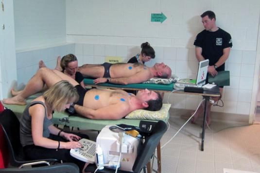 J'ai suivi 3 des séances a Nemo33, en tant que plongeur dans l’équipe de sécurité, et ce qui m'a le plus marquée dans les tests physiologiques, ce sont les échographies du cœur après la plongée. Le nombre de bulles qui circulent entre les ventricules et les oreillettes est impressionnant, et la variation de concentration d'un plongeur à l'autre est considérable. On n'a pas souvent l'occasion de voir de ses propres yeux que nous ne sommes pas tous égaux face aux changements de pression.