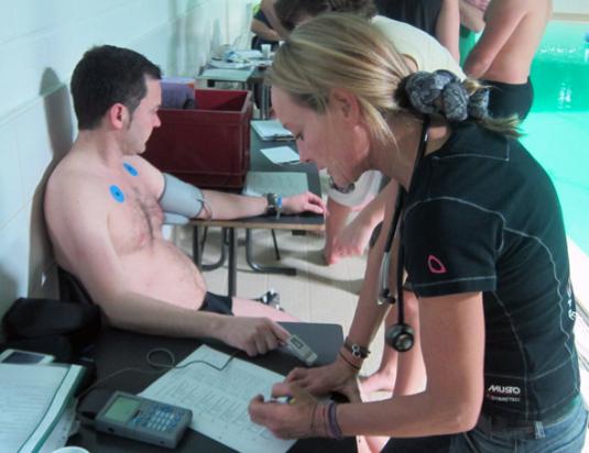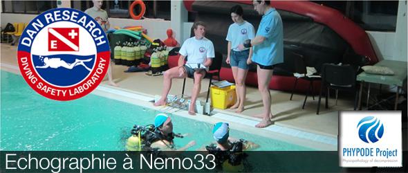 En ce début d'année l'ambiance à NEMO33 (fosse de plongée de Bruxelles) était bien particulière, les plongeurs étaient soumis à une multitude de tests et leurs réactions soigneusement mesurées avant, pendant et après la plongée. Immersion au sein des équipes de DAN pour vous faire découvrir ces travaux de recherche au quotidien. Ceux d'entre vous qui étaient à Némo33 le samedi soir en Février et Mars se sont sans doute rendus compte qu'il y avait de l'activité de l'autre coté de la piscine. En effet, durant 6 séances, l'équipe médicale de DAN Research a accueilli un panel de plongeurs masculins pour une batterie de tests physiologiques. Cette campagne de tests a eu lieu dans la cadre du projet Phypode (physiopathology of decompression), financé par la commission européenne, dans lequel 13 équipes de recherche (chercheurs et médecins hyperbares) collaborent afin d'étudier les effets des changements de pression sur notre corps et particulièrement les mécanismes résultant à la formation de bulles intravasculaires et leur lien avec les accidents de décompression, dans le but d’améliorer les soins prodigués lors d'accidents de décompression ou de développer les algorithmes de décompression qui seront implémentes dans les ordinateurs de plongée de demain.