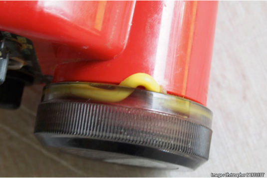 T’as tout déballé sur la table du salon, et entre les deux flashs, la caméra, les ports éventuels et le boitier, tu te retrouves avec quatre ou cinq tubes de graisse silicone de trois marques différentes au moins. Et parce que tu n’as pas trois tubes de dentifrice ouverts dans ta salle de bain, tu penses n'en utiliser qu’un, et puis ça te fera un truc de moins à trimbaler à l’autre bout du monde. Sauf que là, il faut. Les joints Canon ont besoin de la graisse Canon, les joints Inon leur graisse à eux. Pourquoi ? Car les joints eux-mêmes sont faits avec des matières légèrement différentes, et si tu mélanges graisse A avec joint B, tu peux finir avec une grosse C….. A force, le joint va se détendre, et un jour il va t’arriver ça (voir photo ci-dessous). A défaut d’avoir la bonne graisse, la salive marche bien. La tienne ou celle de ton binôme, peu importe.