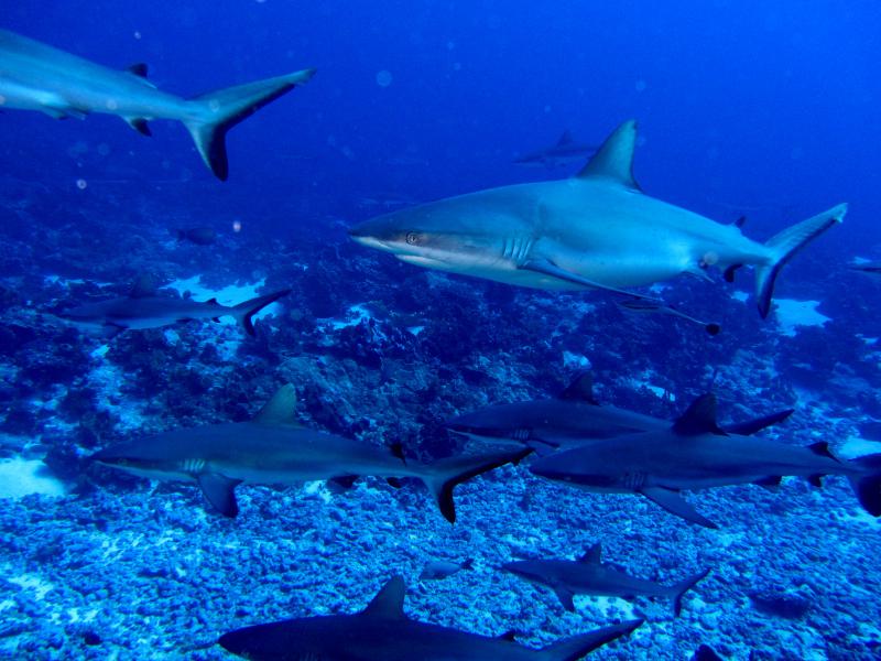 Le mur de requins à Fakarava passe Nord et passe Sud (entre 300 et 400 spécimens)