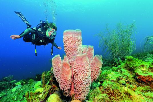 À voir : des grandes gorgones blanches, des bancs de barracudas, poissons ange, poissons trompettes...