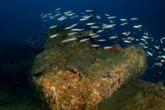 L’épave abrite une faune nombreuse (requins à pointe noire, mérous, poissons jack, etc.) et peut être visitée par tous les niveaux de plongeurs.