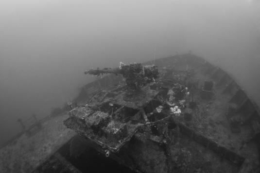 Réservée à des plongeurs chevronnés, l’épave repose à 34 mètres de fond.