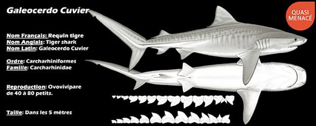 Après le requin marteau halicorne, nous vous proposons de découvrir dans cette page le requin tigre (Galeocerdo Cuvier).